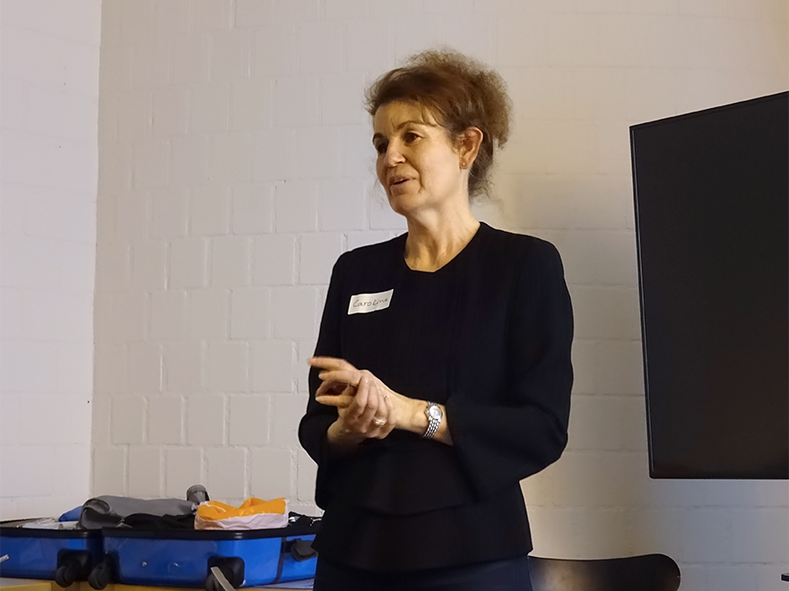 Caroline Bamert demonstrierte den interessierten Zuschauerinnen, wie man einen Koffer übersichtlich packt und verriet ihnen ihre Learnings als Selbständige.