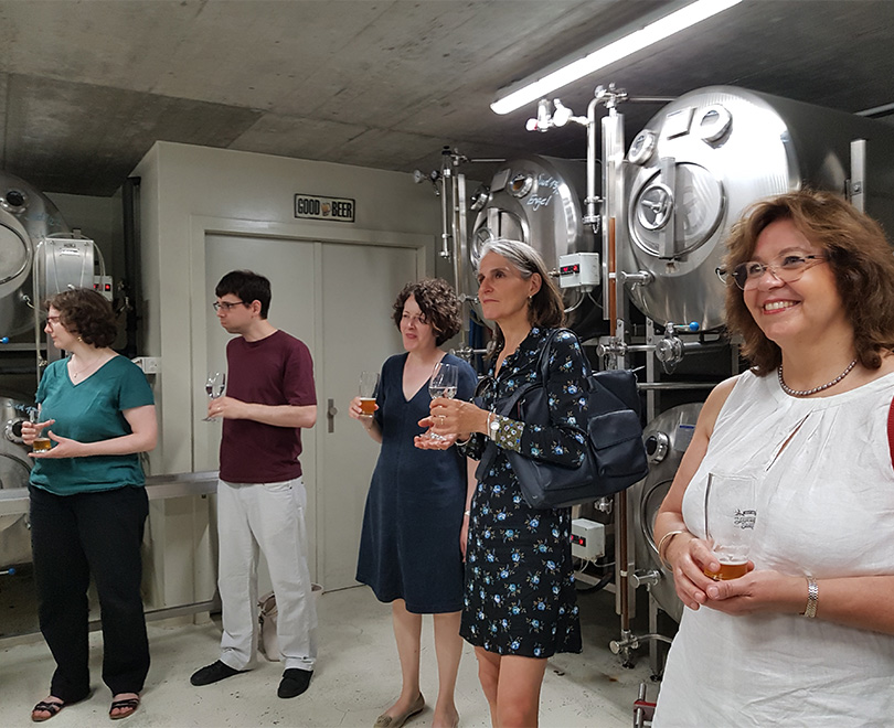 Für den kulinarischen Genuss begaben wir uns in die Stadtmauer-Brauerei vom Teufelhof. Dort wurden wir vom Chef persönlich empfangen. Als souveräner Gastgeber präsentierte er uns auf unterhaltsame und kurzweilige Art seine Kleinbrauerei. Er brachte uns die Bierbraukunst näher. Selbstverständlich war die Degustation der Haus-Biere ein «engelhafter» oder «teuflischer» Genuss. Jede und jeder entdeckte seinen Favoriten.