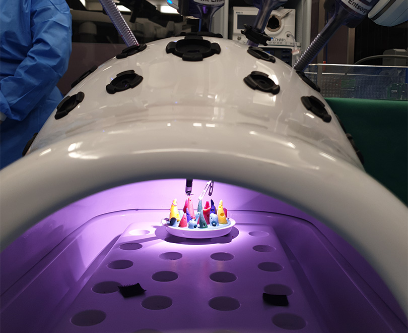 Als Höhepunkt und Highlight durften wir dann den DaVinci Xi-Roboter besichtigen. Wir konnten in den Operationssaal hinein und die vorher im Vortrag theoretisch beschriebenen Möglichkeiten direkt am Roboter studieren. Im Trainingsprogramm des Roboters durften wir diesen sogar selbst bedienen und unsere Geschicklichkeit unter Beweis stellen. Einige Mitglieder waren erfolgreich darin kleine Ringe von einem Kegel herunterzuheben. Dies hat einem einen guten Eindruck von der Präzision und den Möglichkeiten des Roboters gegeben.